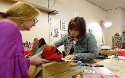 Pam works on her newest creation in the Prairie Arts Continuing Ed " Creatives" class |