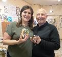 Shawn and master student, Christina, work on Christina's Continuing Ed lamp project |