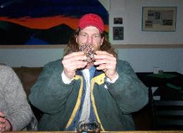 | I tried to follow him. All I found in the parking lot were his overalls, flip flops and a copy of Hot Melons Magazine. Suddenly like out of a Sylvester Stallone movie I heard an explosion. Rat's Place was on fire. I ran to the front and standing there naked and at attention was this character. He waved his hand and the flames went out. He waved it again and the screaming stopped. He waved it once more and it began to snow. He waved a last time and said goodbye as he floated high into the night until he was gone. In the very spot he was standing was a pumpkin. It was lighted and beautiful. How did I know it was Pumpkin Mike? I'm a big fan of "America's Most Wanted". They did a special live feature on him when he was missing the other night. Sighting Three: Jesus Dios, Puerto Vallerta, Jalisco, Mexico We were sitting on the beach drinking American beer. It was called Yuengling. It tastes a little like chicken or rattlesnake, but we like it with limes. The sun was setting and straight from the ocean comes walking a long man in a Speedo with his hand outstretched. He walked up to me and asked for my |